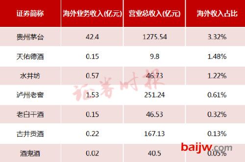 從上市酒企2022年財報相關(guān)數(shù)據(jù)看,白酒收入占總營收的比例也很小。在A股21家白酒上市公司中,記者發(fā)現(xiàn),只有7家公司披露了海外的營收數(shù)據(jù)。