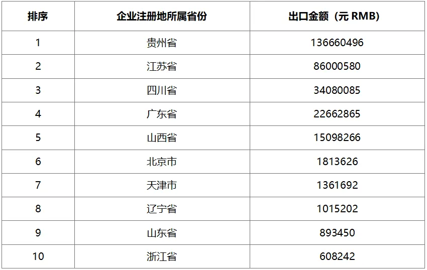 2024年6月白酒主要出口省市按數(shù)量排序