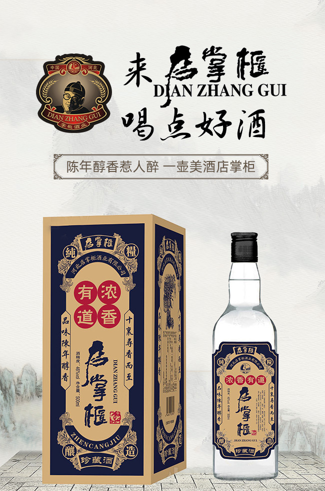河北店掌柜酒業(yè)有限公司,位于歷史文化名城——保定;店掌柜酒業(yè)是近年發(fā)展起來的明星企業(yè),資產(chǎn)總值2800多萬元,占地面積26000㎡,建筑面積6800㎡、員工300多人、儲酒容量1000多噸。全自動生產(chǎn)線3條,發(fā)酵、釀造、勾兌技術(shù)和質(zhì)量控制、檢測手段都具備了國內(nèi)先進水平,是北方初具規(guī)模的中型企業(yè)。本公司在日趨激洌的市場竟?fàn)幹,企業(yè)始終堅持“以質(zhì)量求生存,靠科技求發(fā)展”的治廠方針和戰(zhàn)略,以“店掌柜”商標(biāo)為龍頭系列產(chǎn)品。以高粱為主要原料配以大麥、小麥中溫曲為糖化發(fā)酵,采用傳統(tǒng)工藝低溫發(fā)酵,分級儲存,精心勾兌而成。理化指標(biāo)和衛(wèi)生指標(biāo)均符合國家頒布的蒸餾酒優(yōu)級標(biāo)準(zhǔn)。酒質(zhì)清亮透明,窖香濃郁、綿甜醇和,酒體濃厚、余香悠長。產(chǎn)品暢銷江蘇、河北、湖南、山東、廣東、河南、北京及周邊市縣。深受廣大銷費都好評。