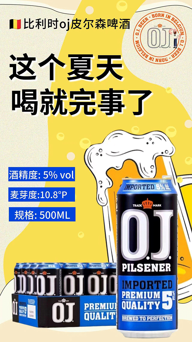 O.J.品牌成立于 2014 年,O.J.啤酒生產(chǎn)工廠位于比利時東部,與荷蘭交界,成立之初就是為消費者提供創(chuàng)新型啤酒飲料產(chǎn)品。該酒廠生產(chǎn)技術(shù)處于行業(yè)領(lǐng)導(dǎo)角色且走在創(chuàng)新的前沿,可以提供酒精度從5度到20度全系列啤酒的品牌公司。