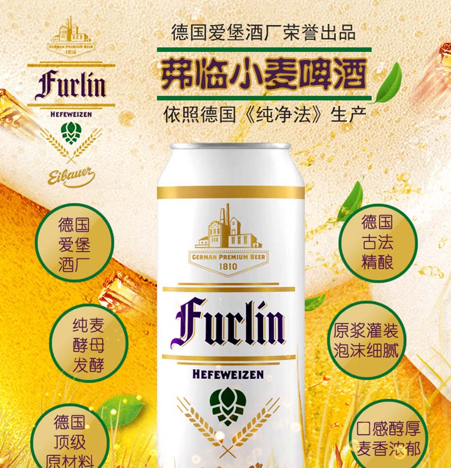 產(chǎn)品簡(jiǎn)介:弗臨歐得小麥精釀啤酒【12°500ml】