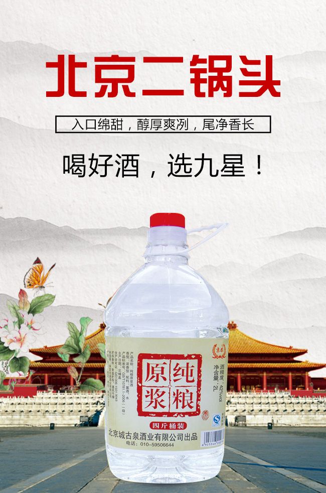 北京九星酒業(yè)有限公司是一家集產(chǎn)品研發(fā),生產(chǎn)銷售為一體的現(xiàn)代化白酒規(guī)模企業(yè)。目前開發(fā)的主要是皇城門系列白酒產(chǎn)品。是以優(yōu)質(zhì)高粱為主要原料,用大麥、小麥、豌豆制成大曲,輔多種微生物為糖化酵劑,再經(jīng)過長期發(fā)酵,緩慢蒸餾,取之精華,經(jīng)多年陳貯后,精心勾兌而成。以“清香幽雅,醇厚綿甜,尾昧爽凈”的獨特風(fēng)格,深受各界朋友的青睞。