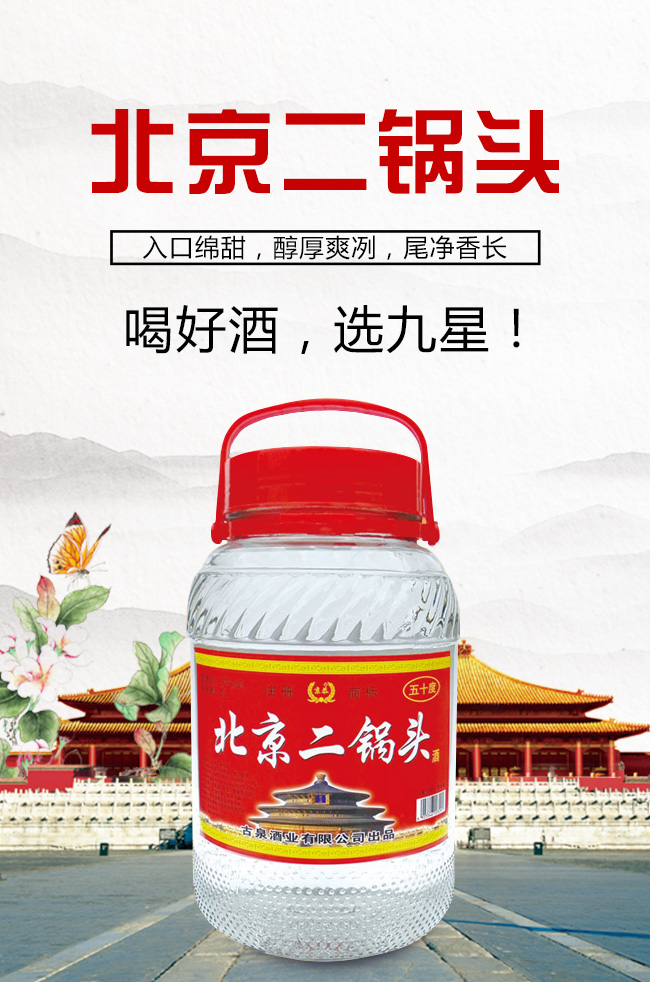 北京九星酒業(yè)有限公司是一家集產(chǎn)品研發(fā),生產(chǎn)銷售為一體的現(xiàn)代化白酒規(guī)模企業(yè)。目前開發(fā)的主要是皇城門系列白酒產(chǎn)品。是以優(yōu)質(zhì)高粱為主要原料,用大麥、小麥、豌豆制成大曲,輔多種微生物為糖化酵劑,再經(jīng)過長期發(fā)酵,緩慢蒸餾,取之精華,經(jīng)多年陳貯后,精心勾兌而成。以“清香幽雅,醇厚綿甜,尾昧爽凈”的獨特風(fēng)格,深受各界朋友的青睞。
