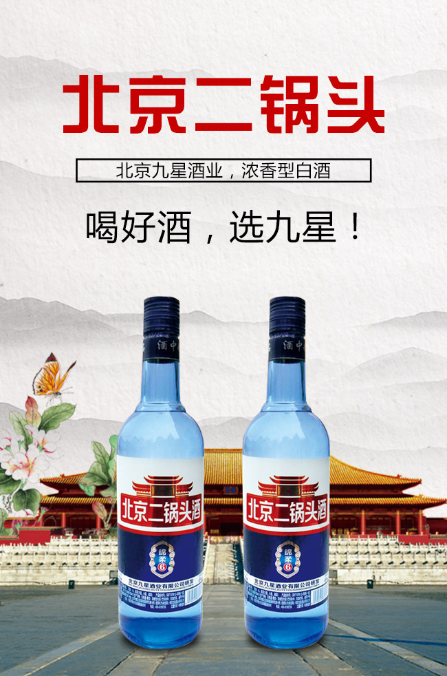 北京九星酒業(yè)有限公司是一家集產(chǎn)品研發(fā),生產(chǎn)銷售為一體的現(xiàn)代化白酒規(guī)模企業(yè)。目前開發(fā)的主要是皇城門系列白酒產(chǎn)品。是以優(yōu)質(zhì)高粱為主要原料,用大麥、小麥、豌豆制成大曲,輔多種微生物為糖化酵劑,再經(jīng)過長期發(fā)酵,緩慢蒸餾,取之精華,經(jīng)多年陳貯后,精心勾兌而成。以“清香幽雅,醇厚綿甜,尾昧爽凈”的獨特風(fēng)格,深受各界朋友的青睞。