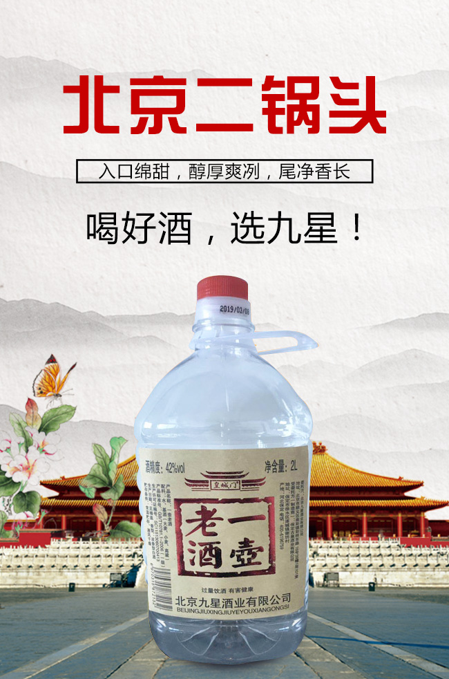 北京九星酒業(yè)有限公司是一家集產(chǎn)品研發(fā),生產(chǎn)銷售為一體的現(xiàn)代化白酒規(guī)模企業(yè)。目前開發(fā)的主要是皇城門系列白酒產(chǎn)品。是以優(yōu)質(zhì)高粱為主要原料,用大麥、小麥、豌豆制成大曲,輔多種微生物為糖化酵劑,再經(jīng)過長期發(fā)酵,緩慢蒸餾,取之精華,經(jīng)多年陳貯后,精心勾兌而成。以“清香幽雅,醇厚綿甜,尾昧爽凈”的獨特風格,深受各界朋友的青睞。