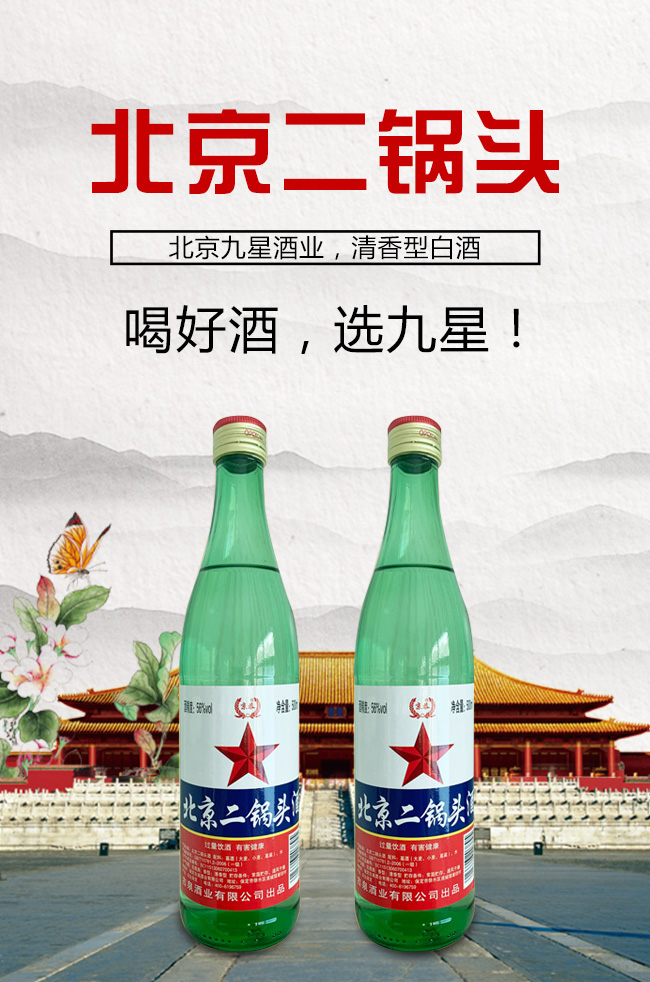 產(chǎn)品名:京恭北京二鍋頭酒綠瓶56°500ml清香型白酒