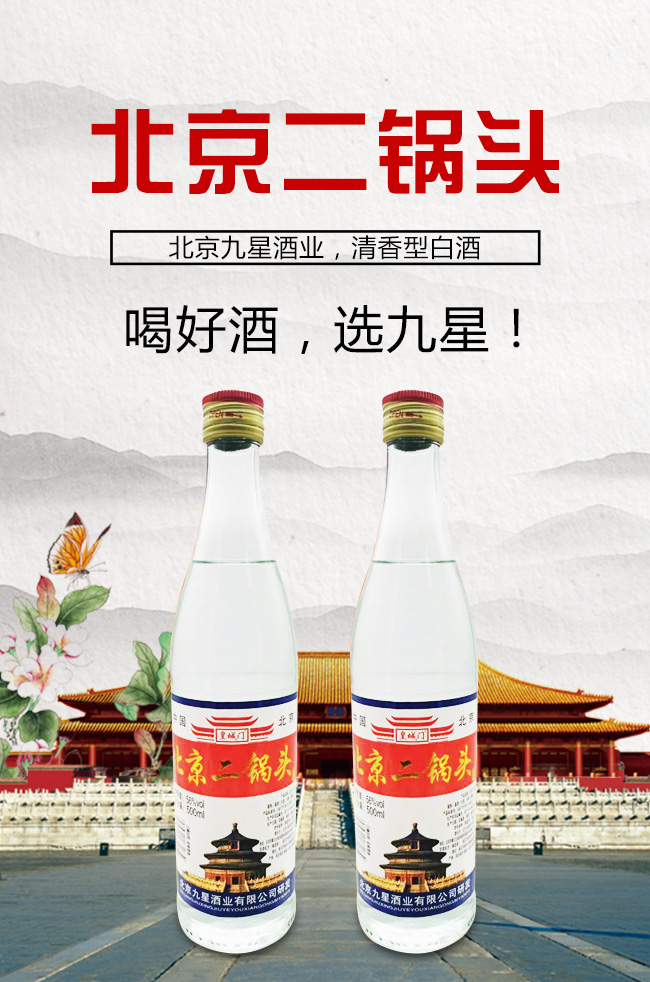 北京九星酒業(yè)有限公司是一家集產(chǎn)品研發(fā),生產(chǎn)銷售為一體的現(xiàn)代化白酒規(guī)模企業(yè)。目前開發(fā)的主要是皇城門系列白酒產(chǎn)品。是以優(yōu)質(zhì)高粱為主要原料,用大麥、小麥、豌豆制成大曲,輔多種微生物為糖化酵劑,再經(jīng)過長期發(fā)酵,緩慢蒸餾,取之精華,經(jīng)多年陳貯后,精心勾兌而成。以“清香幽雅,醇厚綿甜,尾昧爽凈”的獨特風(fēng)格,深受各界朋友的青睞。