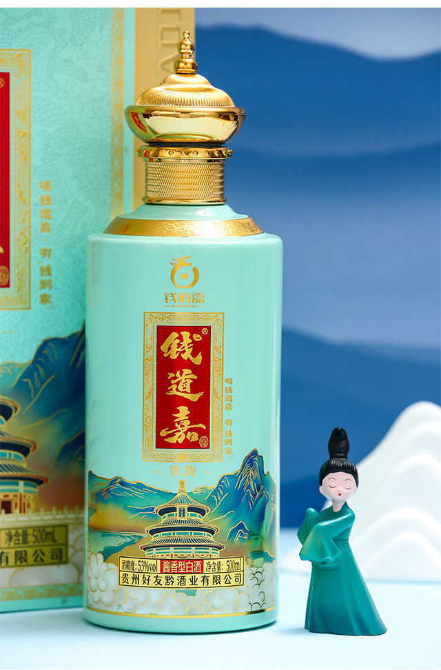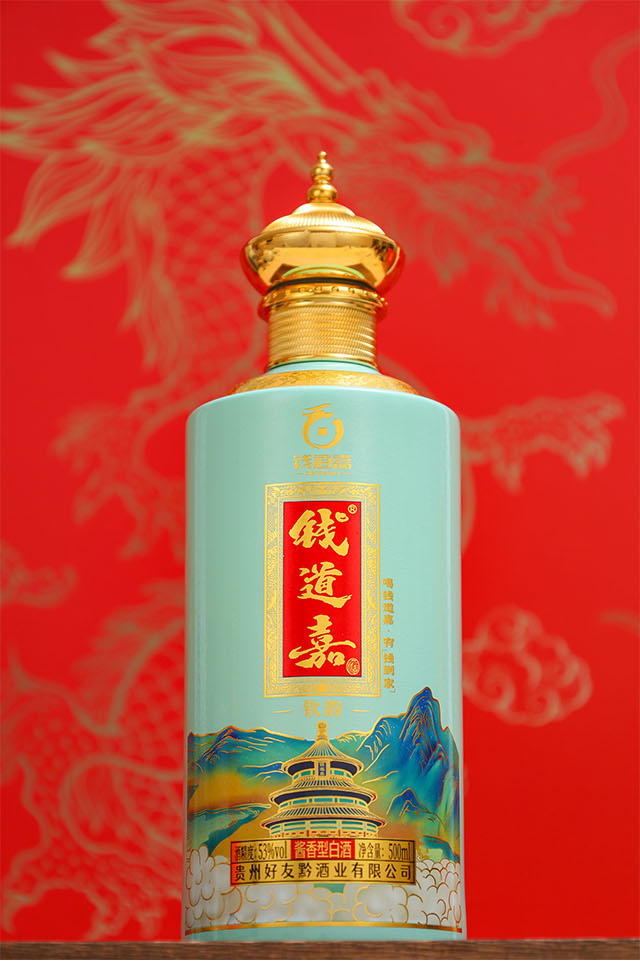 貴州好友黔酒業(yè)秉持“酒納萬(wàn)福,飲酒有道而財(cái)自生”的初心,創(chuàng)立了“錢(qián)道嘉”品牌。創(chuàng)意來(lái)源于大清——乾隆、道光、嘉慶三朝的前三個(gè)字“乾道嘉”,諧音為“錢(qián)到家”。其中內(nèi)涵為“乾天中日、運(yùn)走昌隆、家合平安、富貴永慶”。從創(chuàng)立“錢(qián)道嘉”品牌到產(chǎn)品的問(wèn)世,每一步都心懷對(duì)廣大酒友們深深的祝福。品美酒佳釀,感受穿越古今而來(lái)的厚重之禮。