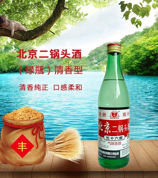 產(chǎn)品名:京良北京二鍋頭酒(綠瓶) 清香型白酒【56° 500ml】