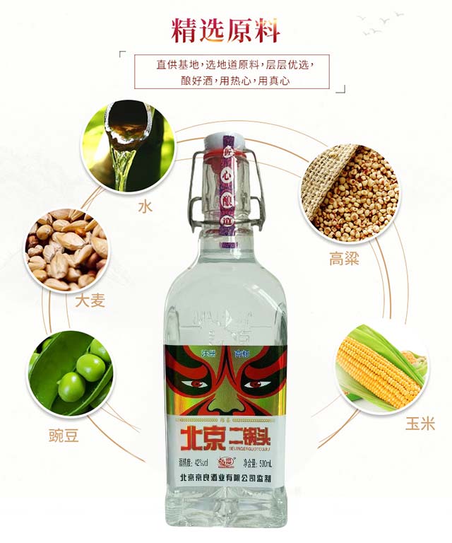 產(chǎn)品名:京良北京二鍋頭酒(紅臉譜) 清香型白酒【42° 500ml】