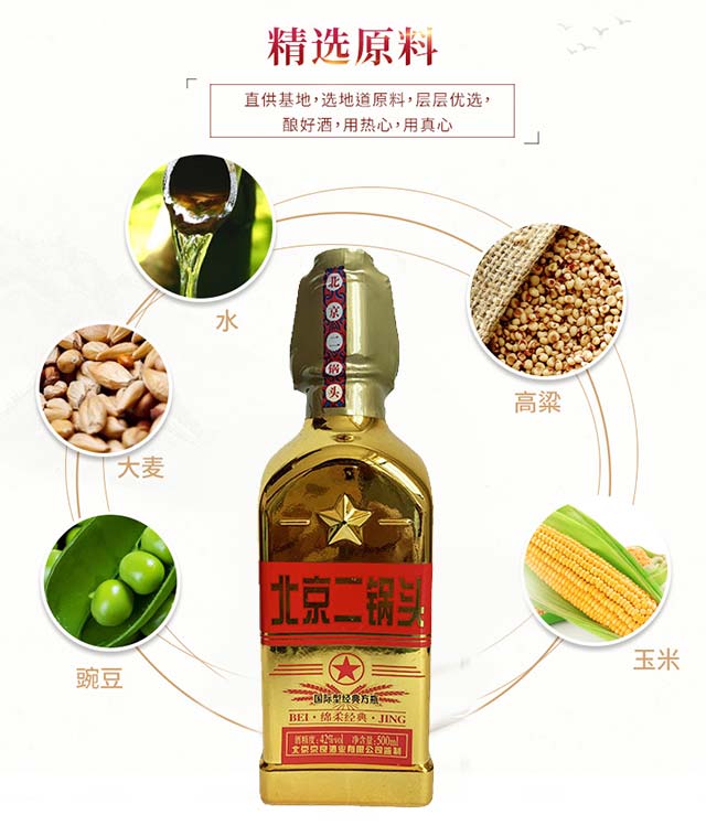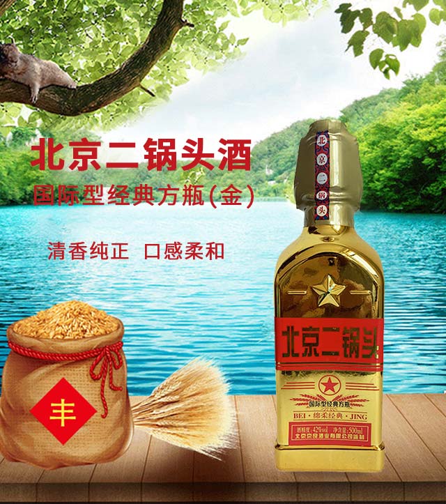 產(chǎn)品名:京良北京二鍋頭酒國(guó)際型經(jīng)典方瓶(金) 清香型白酒【42° 500ml】.
