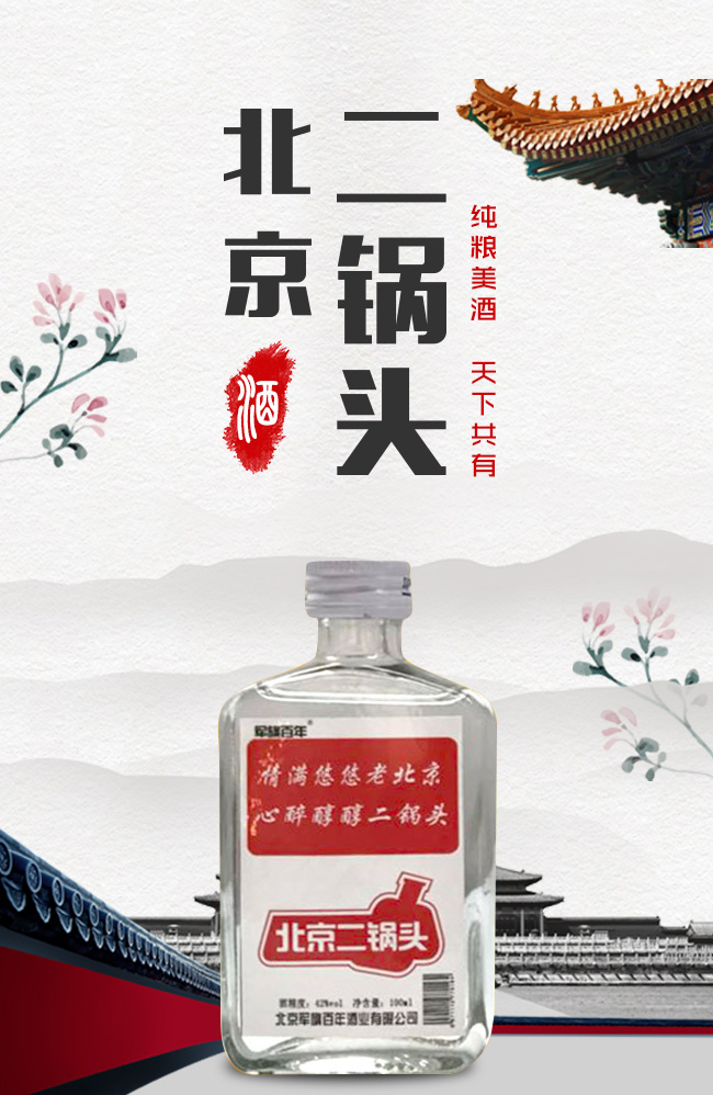 產(chǎn)品名:軍旗百年北京二鍋頭酒(情滿悠悠)42°100ml