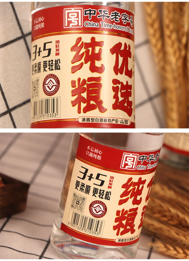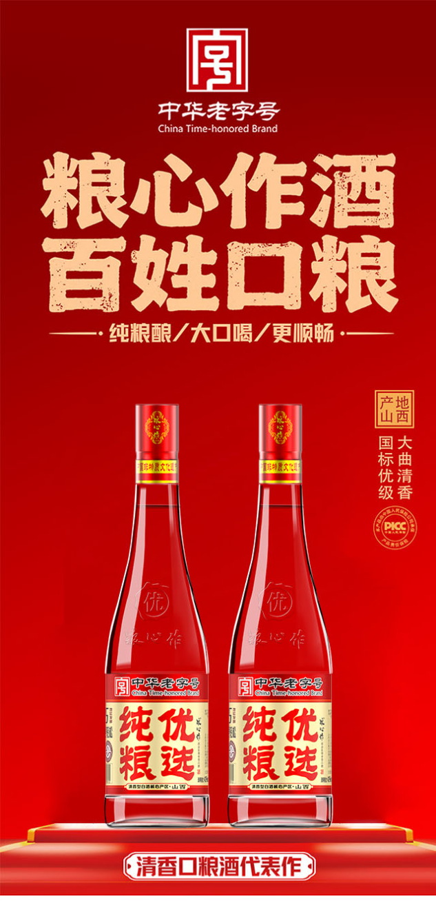 品名:糧心作-純糧優(yōu)選酒(紅蓋) 清香型【42° 475ml×12瓶】