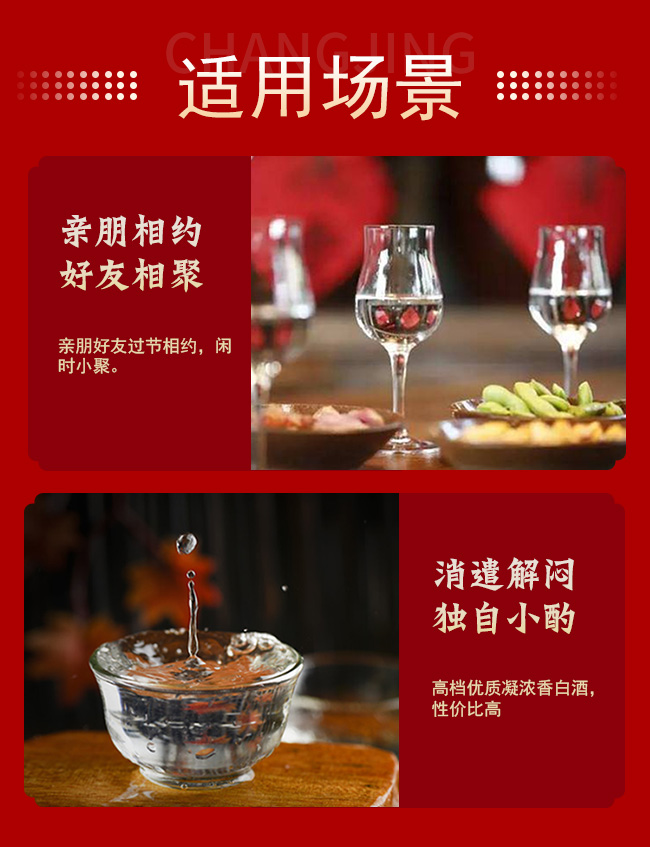 適飲場(chǎng)合:商務(wù)宴會(huì)、團(tuán)圓小酌、婚慶宴席、節(jié)日送禮、收藏