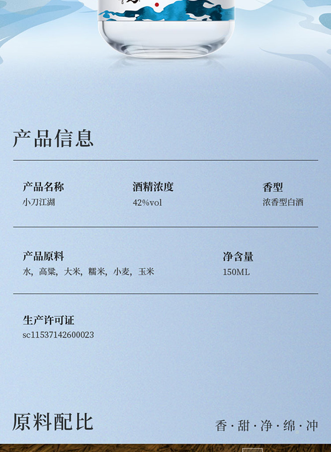 產(chǎn)品名:小刀酒江湖42°150ml濃香型白酒