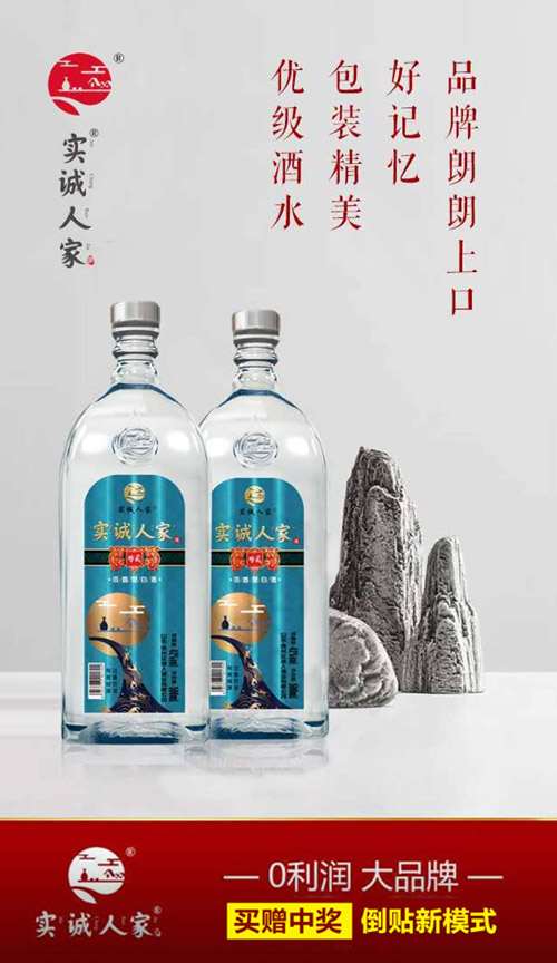 光瓶酒市場極大,好的產(chǎn)品,輔之以好的推廣,一定能有一番天地。對于經(jīng)銷商而言,產(chǎn)品品質(zhì)、顏值、廠家重視程度、市場活動頻率也都是重要參考因素。山東實誠人酒業(yè)有限公司是一家從事白酒生產(chǎn)、銷售的現(xiàn)代化白酒生產(chǎn)企業(yè),公司審時度勢,隆重推出零利潤·大品牌·買贈倒貼·新模式,實現(xiàn)真正的買贈倒貼,解決酒水市場不動銷、動銷慢的市場難題!讓消費者競相購買,零售商利潤大、渠道暢通,代理商化被動為主動實現(xiàn)銷量化、利潤化!